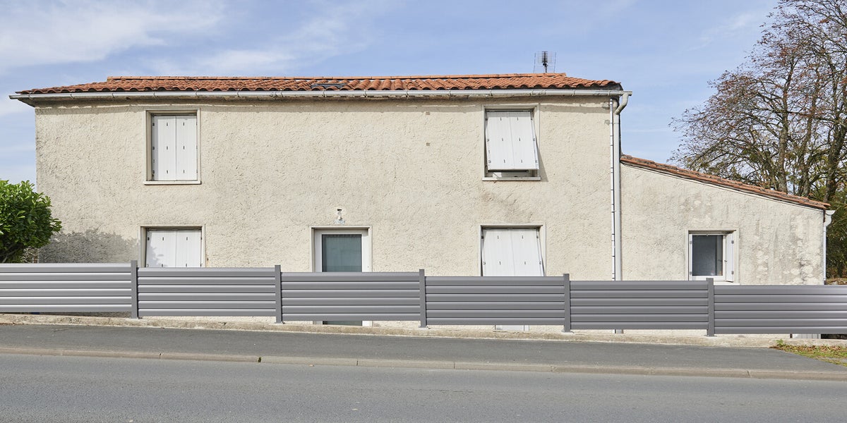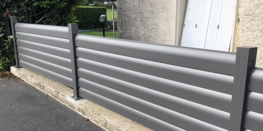 La clôture en aluminium Azur est un modèle composé de lames persiennes de forme courbe hauteur 160 mm, d’une longueur standard de 1,80 mètres.